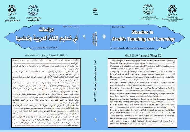 شماره 9 مجله علمی پژوهشی «دراسات فی تعلیم اللغة العربیة وتعلمها»